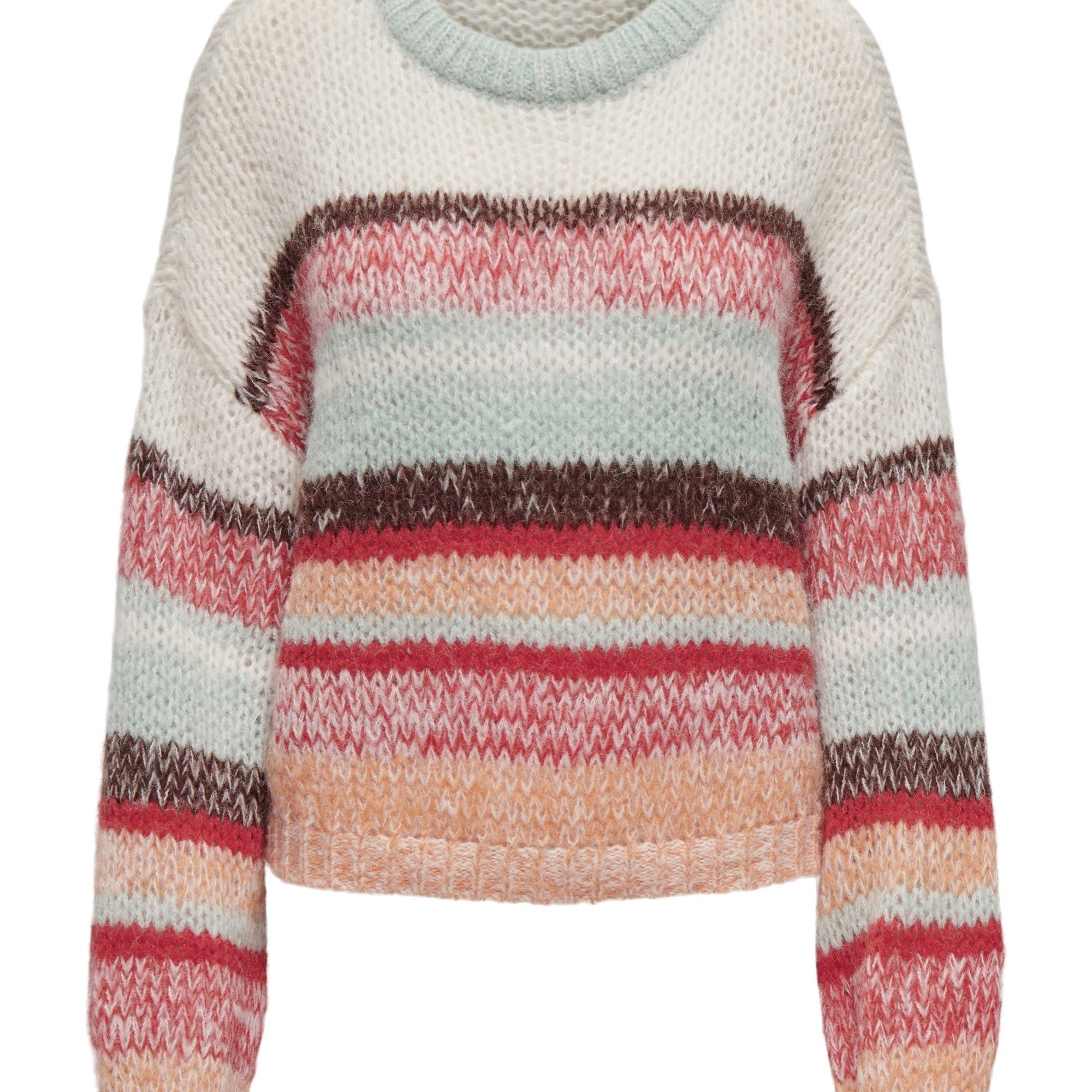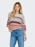 ALYSSA O NECK KNIT SWEATER - AQUA GREY STRIPES