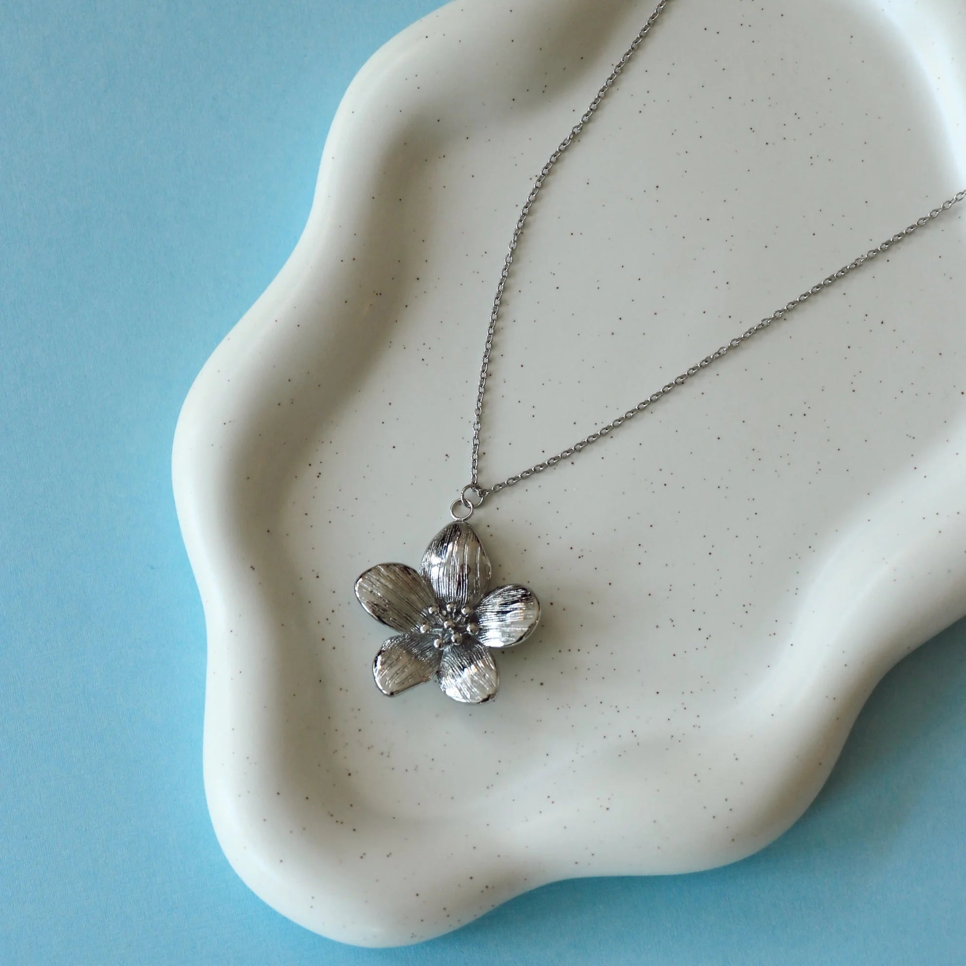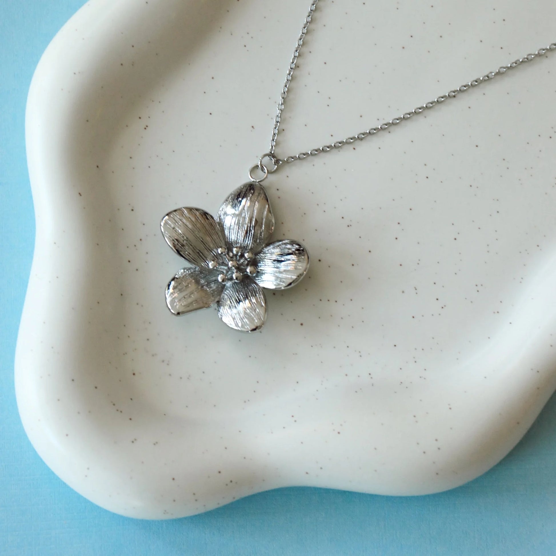 Necklace with five-petal flower pendant. Discover the details of the flower and match this necklace with your summer outfits.