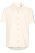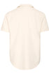Tailored V-neck button-down with collar, featuring short sleeves in a versatile bleached sand tone.