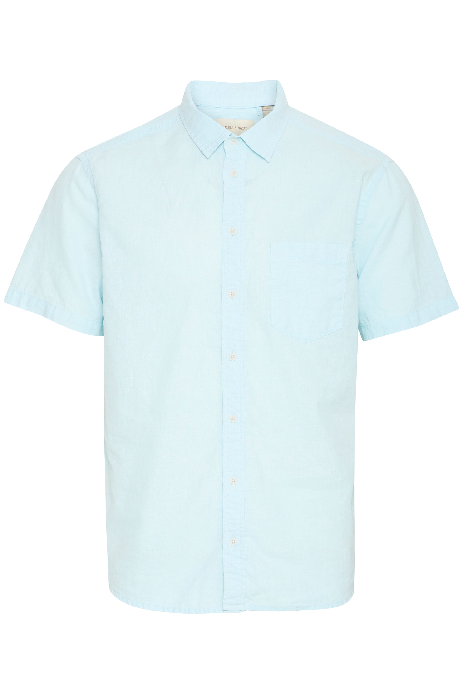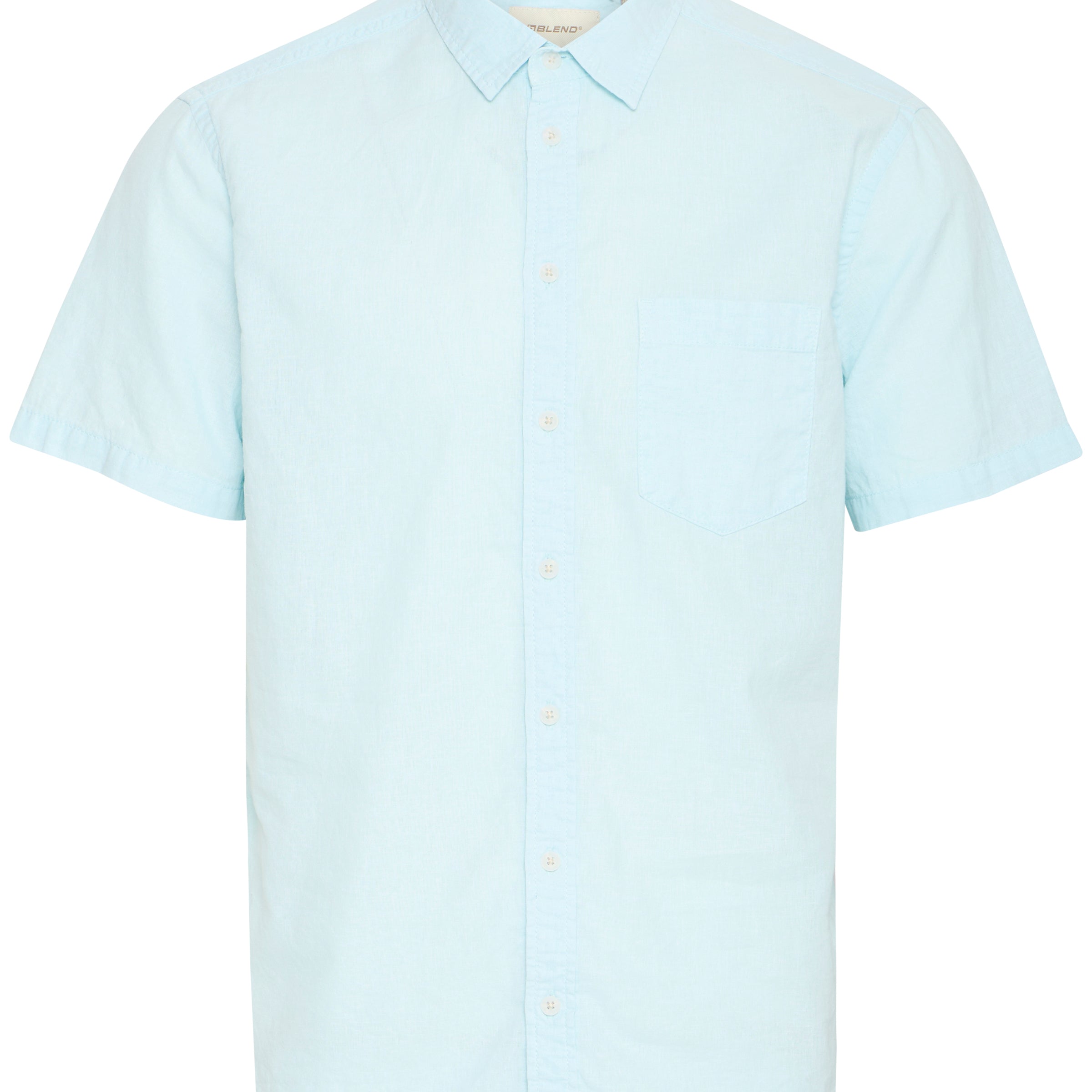 BLEND ANGELO BASIC LINEN BUTTON SHIRT - AQUA
