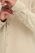 This long-sleeved, structured button-down shirt features a classic collar and a textured striped pattern, offering a refined and polished look.