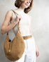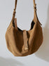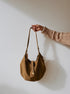 This modern cresent shaped slouch bag is handcrafted from our soft Italian Suede. Adjustable straps provide versatility to wear on the shoulder or as a crossbody. Featuring polished metallic hardware. Get ready to turn heads with this stunning piece.