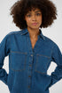 Long sleeved denim shirt with front functional buttons.
