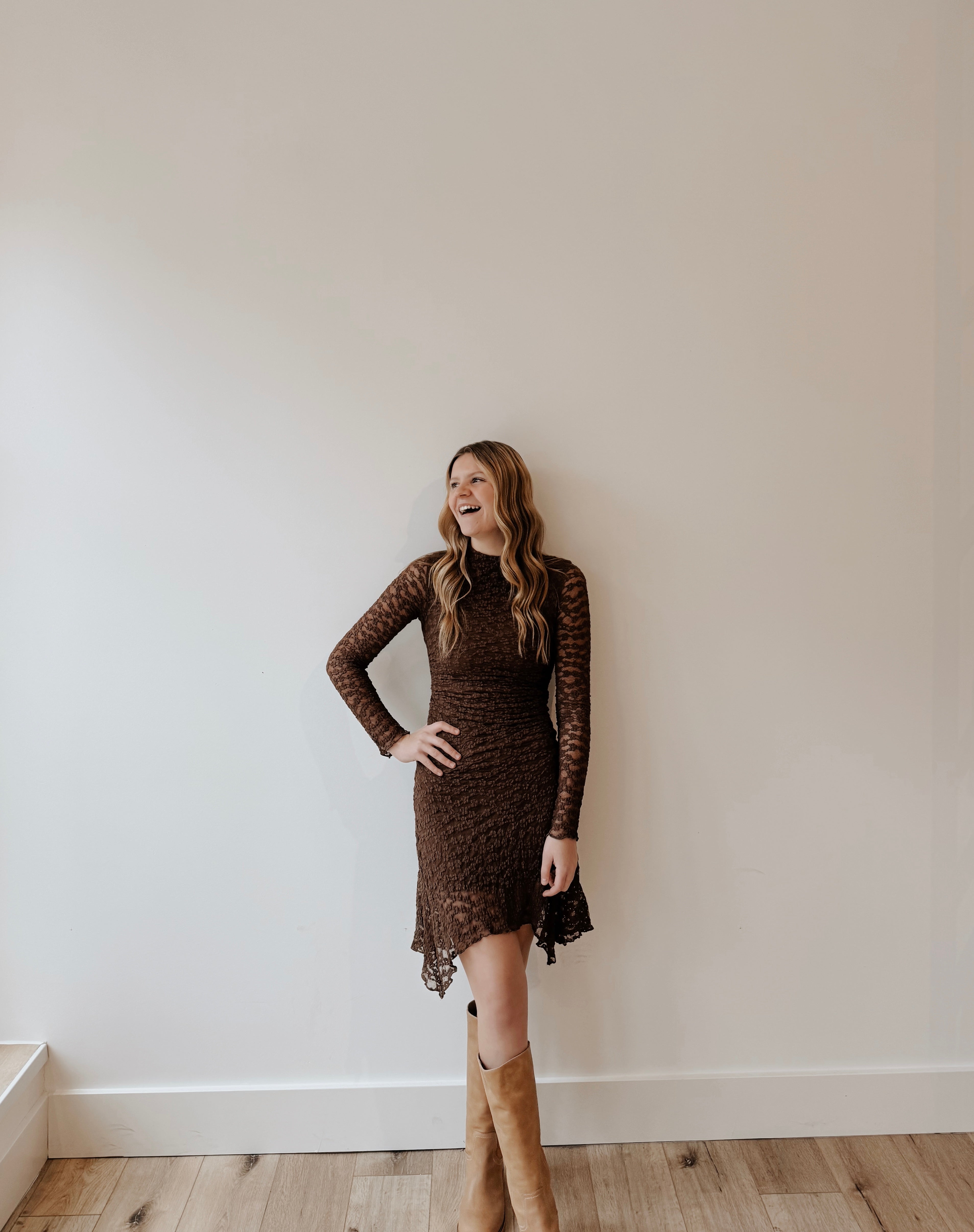DATE NIGHT LACE FITTED DRESS - BROWN