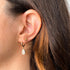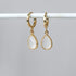 Sleeper earrings adorned with a drop-shaped pendant in cream-colored glass stone.