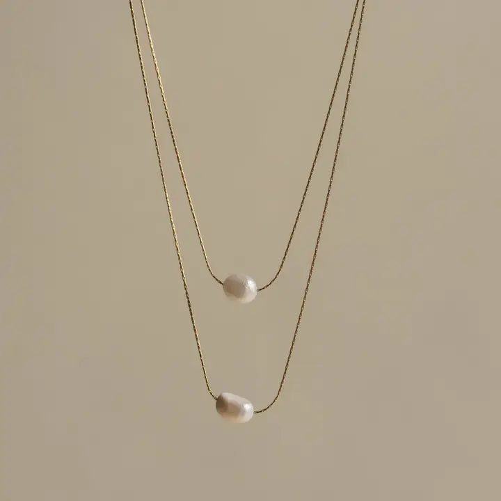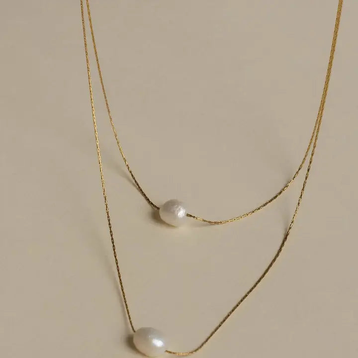 This elegant necklace showcases two delicate strands of lustrous freshwater pearls, each carefully set to create a refined, timeless look. A captivating piece that adds sophistication to any ensemble, it’s a favorite among our best-sellers.