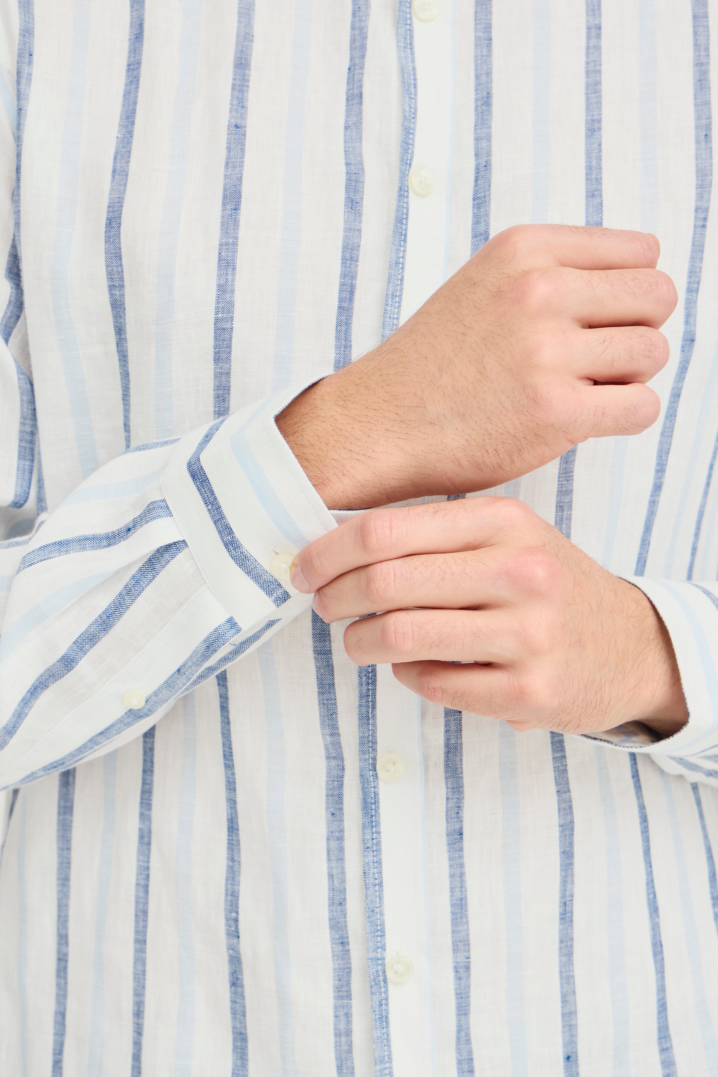 DYLAN STRIPED LINEN SHIRT - ESTATE BLUE