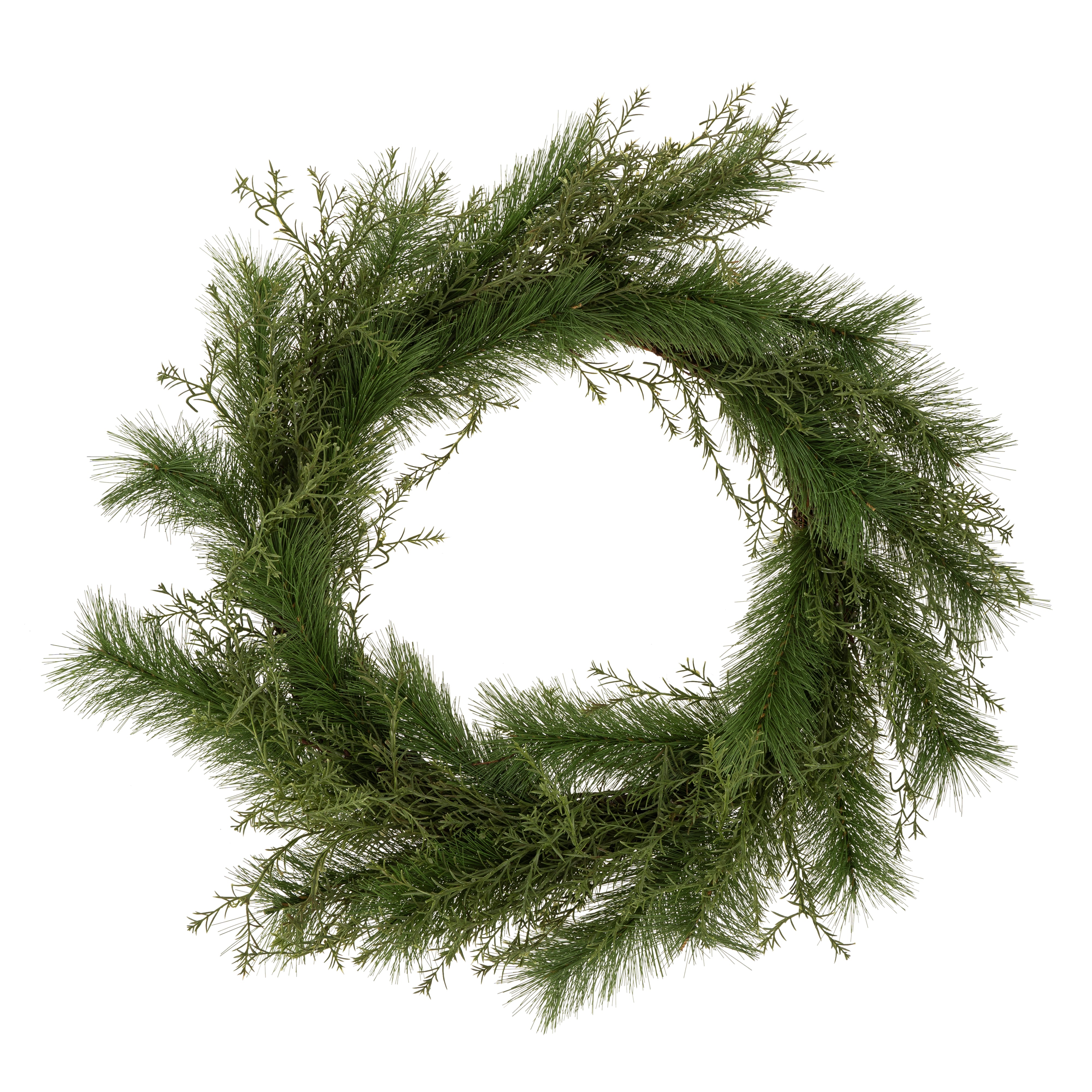 Greenery creates a significant impact in any space, and for the holidays we love using wreaths to create holiday moments throughout the home. Not everyone has a mantle, so we invite you to style the beautifully realistic Foraged Pine Wreath in unexpected places – above a contemporary fireplace, framed by a door, over a mirror, in the window or as part of a holiday vignette over a side console.