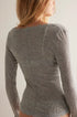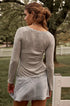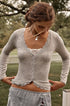 Form-fitting, semi-cropped featuring a soft ribbed fabrication, V-neckline, button-front closure, lace trim, rounded hem.