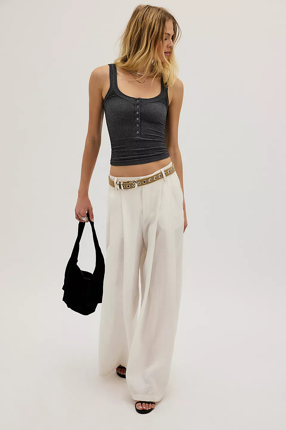 FREE PEOPLE CLEAN SLATE HENLEY TANK - BLACK