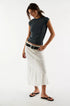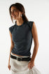 Slim fit, hip-length style featured in a soft fabrication with a ribbed texture and stretchy feel, crew neckline, cap-inspired sleeves, raised seam detail, minimal design. Simple yet essential, this tee pairs perfectly with everything.