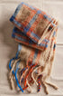 The coolest addition to your cold-weather accessories collection, this timeless scarf is featured in a cozy, fuzzy fabrication and staple plaid print with beading at trim for a special finishing touch.