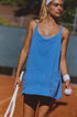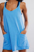 Soft fabrication, lightweight design, scoop-neckline, thin shoulder straps, racerback detail with zippered pocket, oversized patch pockets at front, lined interior with shorts piecing at bottom.