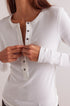 Slim fit, classic cut featuring a soft cotton fabrication with a stretchy feel, henley-style with button closures, fitted long-sleeves, exposed seam detailing, round hemline.