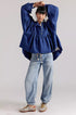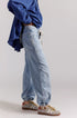 Low-rise, low-slung, pull-on style, boyfriend silhouette, classic rigid denim featuring a five-pocket design, rounded seamed details, drawcord waistband and cuffs, button-fly closure.