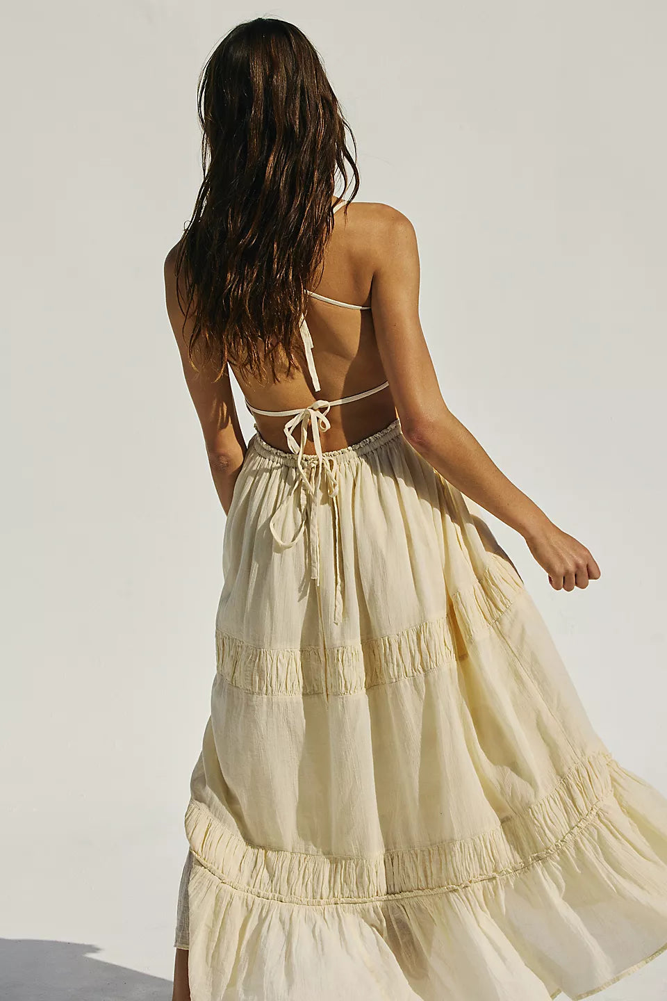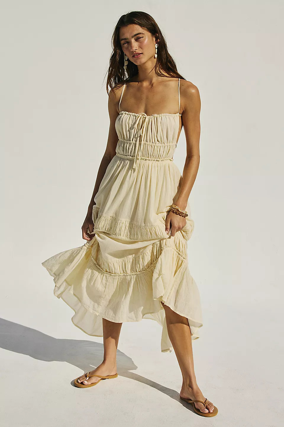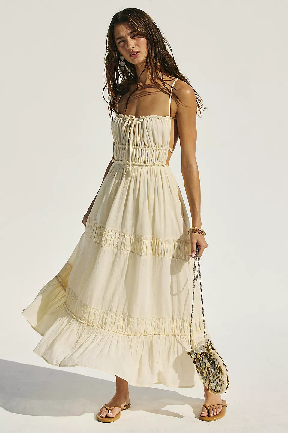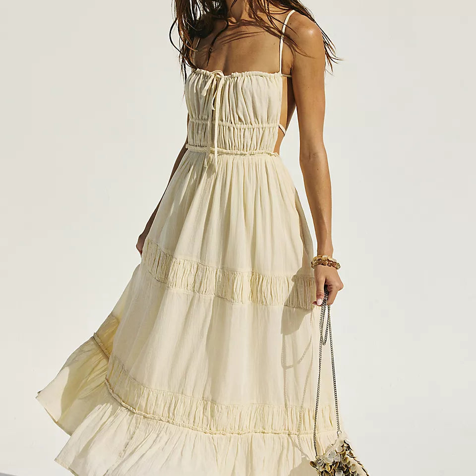 Just as effortless as it is versatile, this wear-everywhere maxi from our free-est collection is featured in a billowy, tiered silhouette with smocked detailing at the bodice and front tie detailing for added dimension.