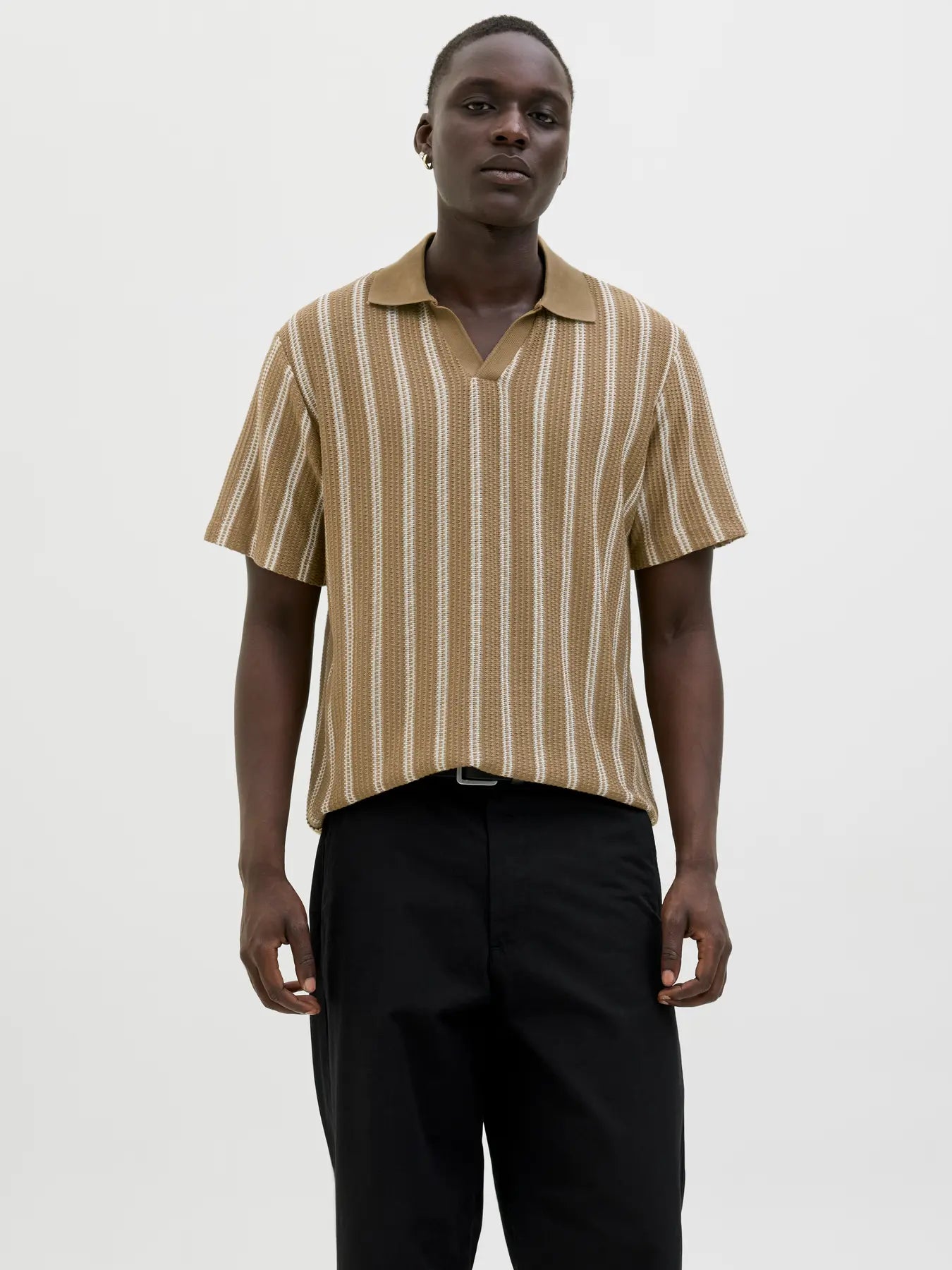 HARRY SPLIT NECK POLO - ELMWOOD STRIPES