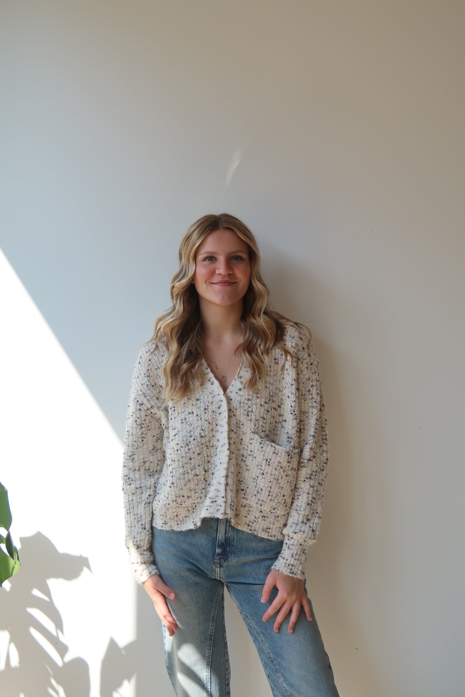 NEDI LONG SLEEVE CARDIGAN - CREAM FLECK