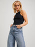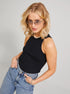A versatile ribbed tank with a refined high neckline, designed as a wardrobe staple for effortless layering and everyday wear.