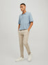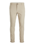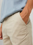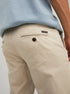 The chino pant is an essential style for this category. It is the in between of a dress pant and a casual 5 pocket styling. It's a plain styling, with front and back pockets only.