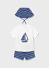 MAYORAL 3PC SHORTS + HAT SET - CAPRI BLUE