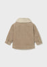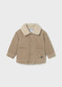 Long-sleeved coat for baby with buttoned cuffs. Front closure with snap buttons and zipper. Made from soft, cozy corduroy fabric. Features a plush faux-shearling collar and lining for extra warmth. Front pockets. This is a unisex design, offering great versatility thanks to its neutral tones and shape.