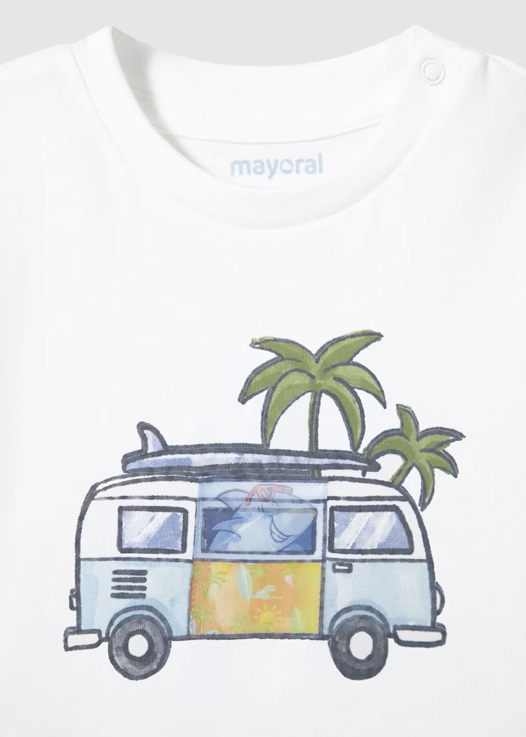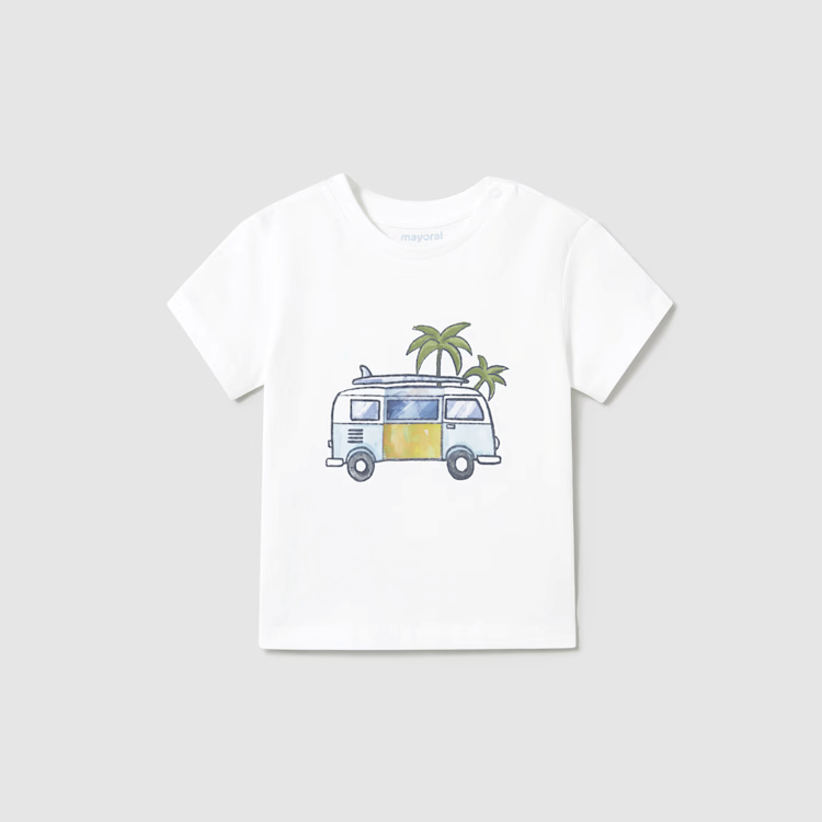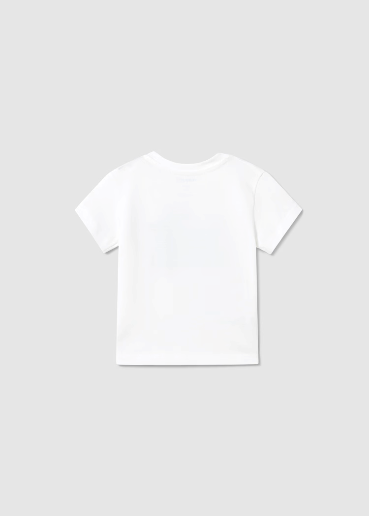 The distinctive graphic element on the front elevates this white tee from basic to statement piece, combining practicality with contemporary design.