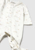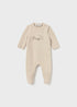 Long sleeved one-piece for newborn baby boy. Round neckline. Snap button fastening on the front. Snap button fastening at crotch for easy dressing. Patterned design. For this item, the larger sizes (from 6-9 months to 18 months) will not have feet. This is to allow better mobility and more comfort.
