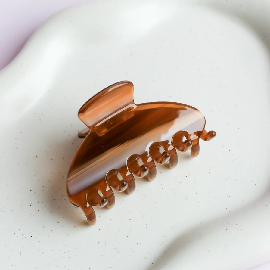 Rounded hair clip in shades of camel, cream and blue-grey. Ideal for half ponytails or even for finer hair.