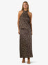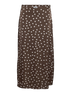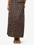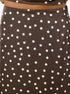 Elevate your wardrobe with this sophisticated midi satin skirt, featuring an allover white polka dot print against a rich chocolate brown base.