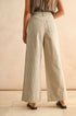 OLIVIA STRIPE FABRIC MIX PANTS - BROWN