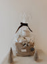 This On Trend gift set includes a handmade teddy pouch ($62) , SOAK soap bar ($17.50), le bon shoppe ballet socks($25) , flower claw clip ($16), a ceramic house ornament ($12) and a brass bell ($8).