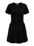 Short sleeved dress with a smocked bodice and balloon style skirt.