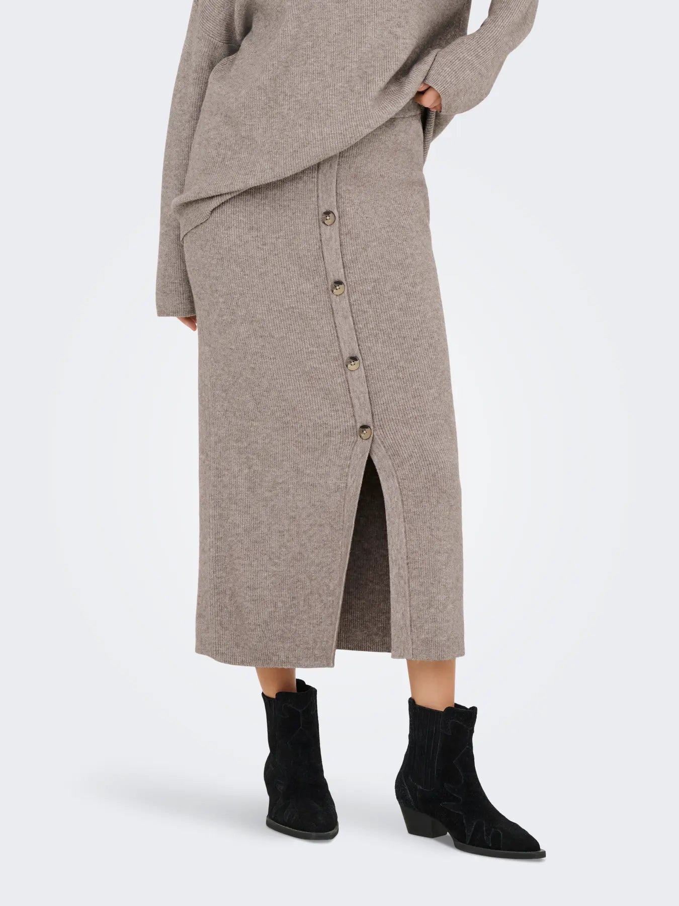 ONLY LIBI KNIT BUTTON SKIRT - FUNGI MELANGE