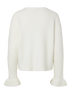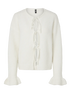 Crafted from quality knit fabric, this refined tie cardigan features a classic crew neckline and extended sleeves finished with delicate ruffled cuffs.