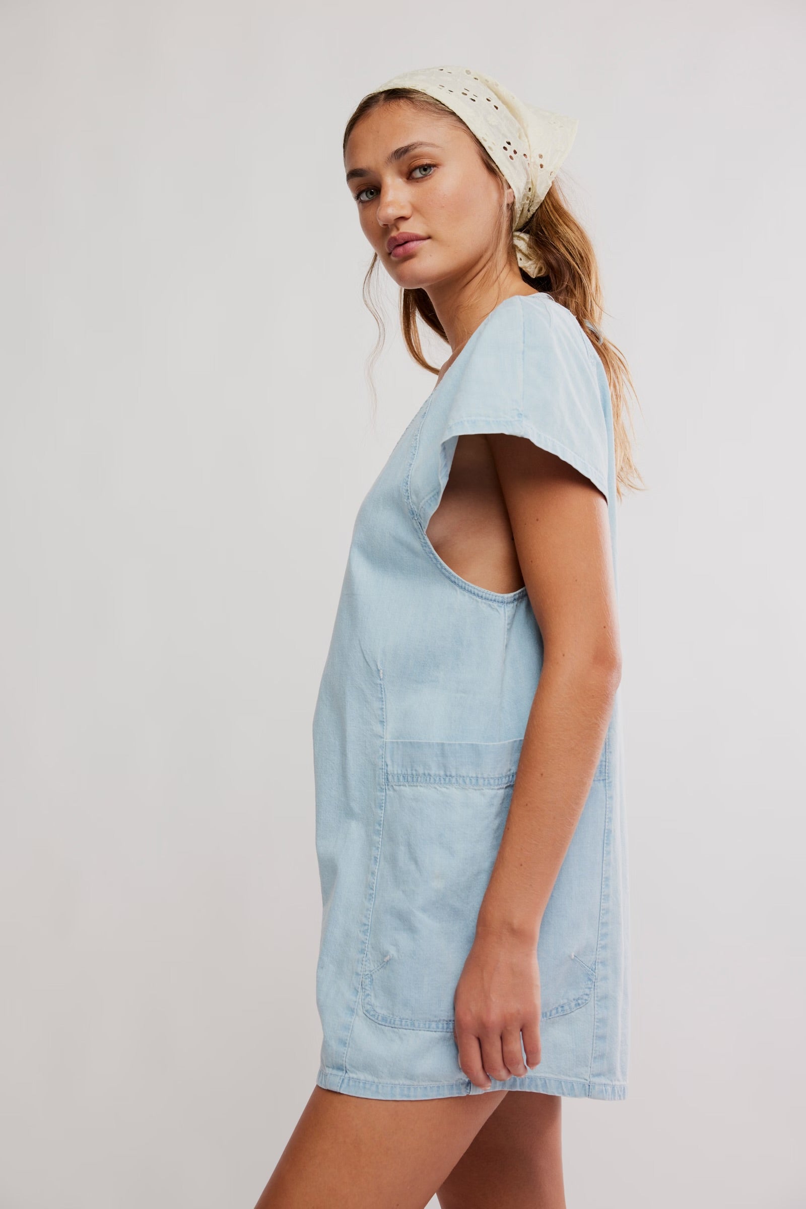 FREE PEOPLE FREE FALL DENIM ROMPER - WATER