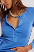 Slim fit, classic cut featuring a soft cotton fabrication with a stretchy feel, henley-style with button closures, fitted long-sleeves, exposed seam detailing, round hemline.