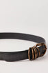 Pull things together in this classic leather belt featuring gold hardware with ring details on the side.