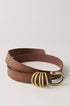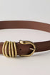 Pull things together in this classic leather belt featuring gold hardware with ring details on the side.