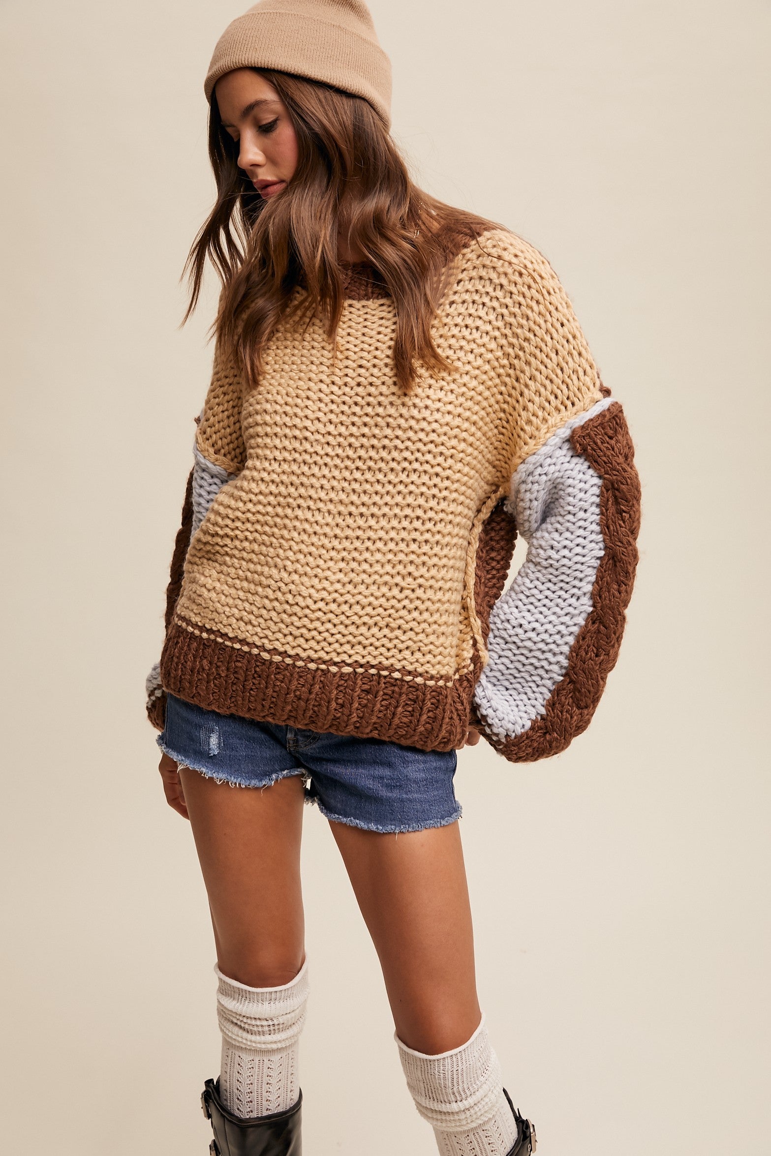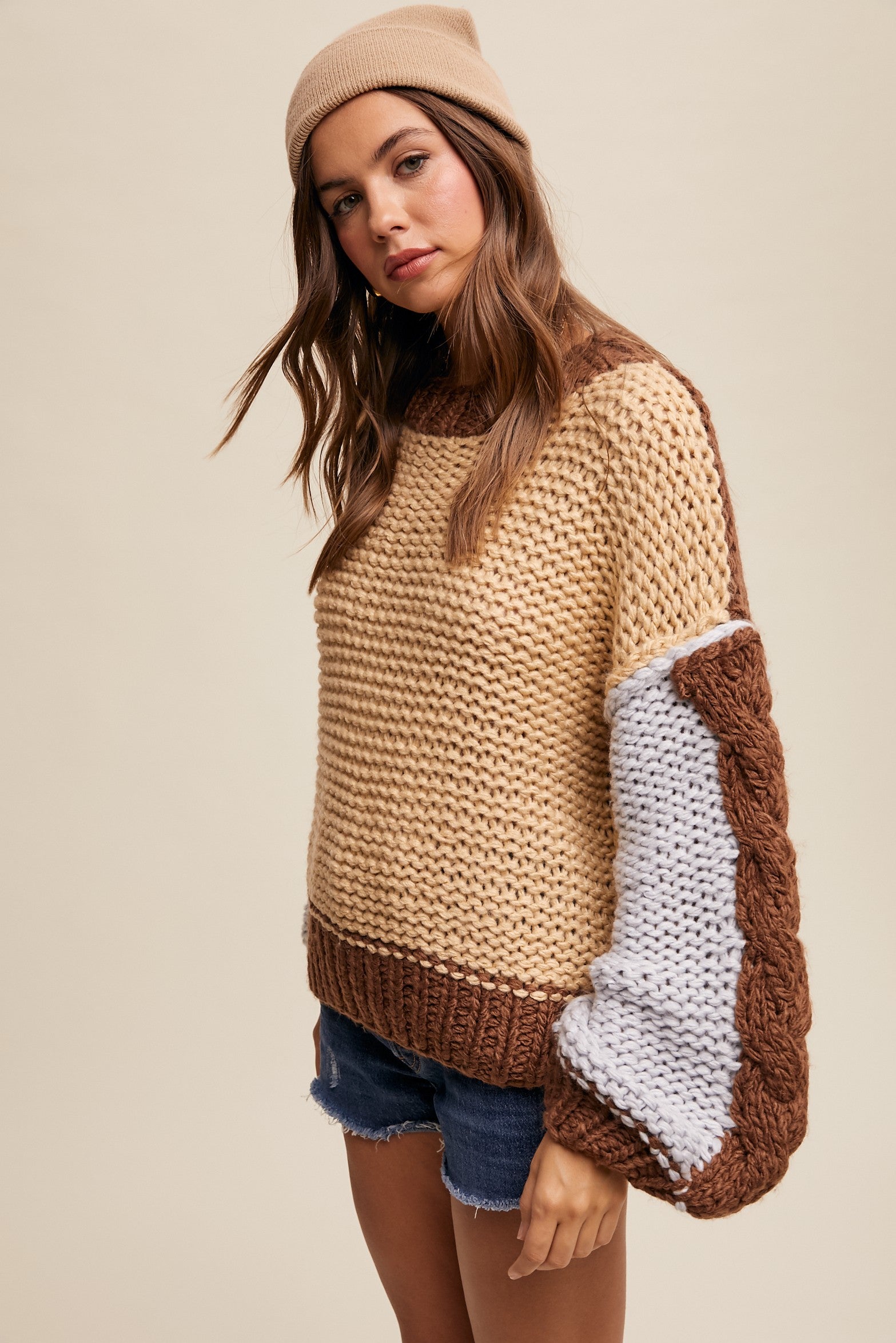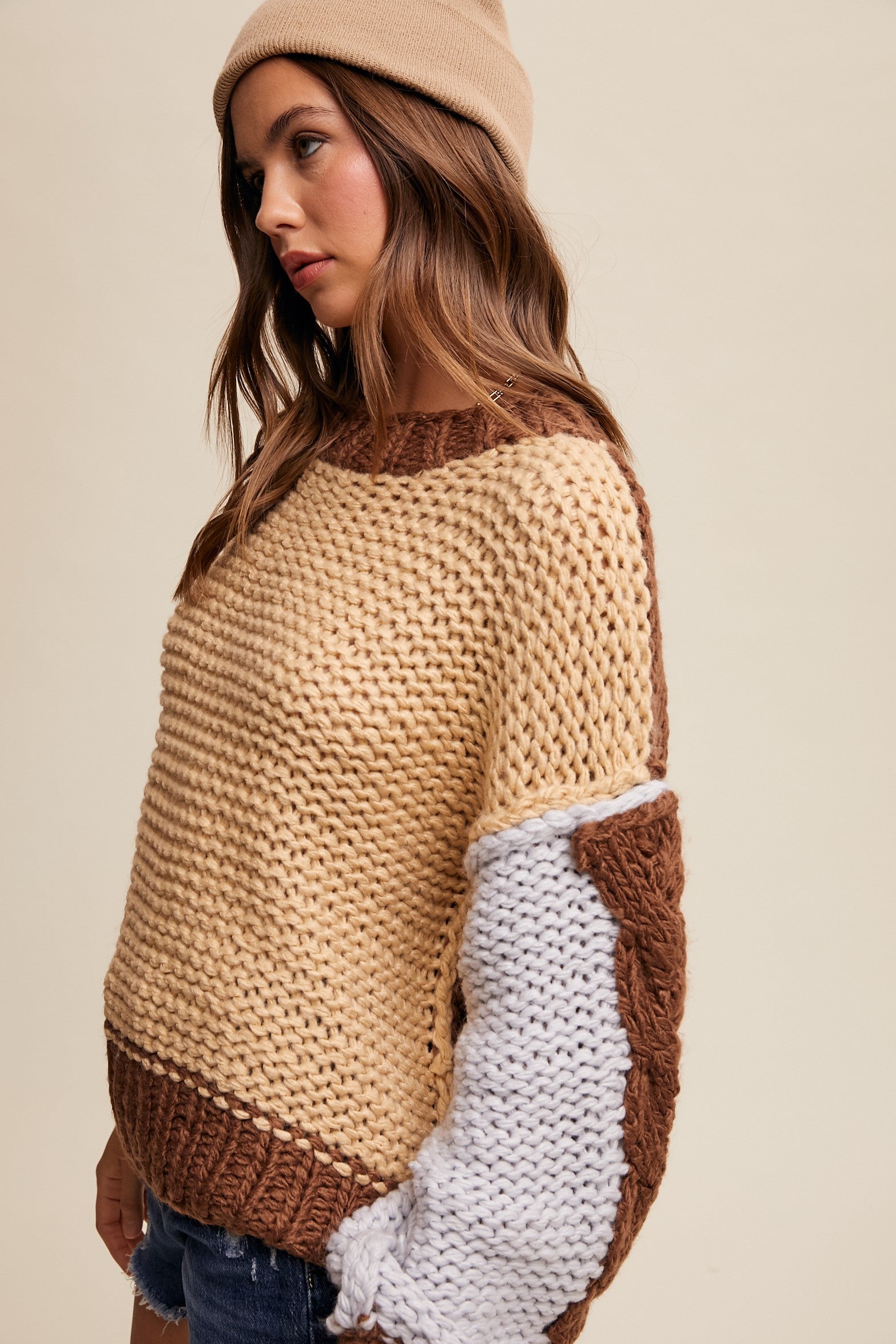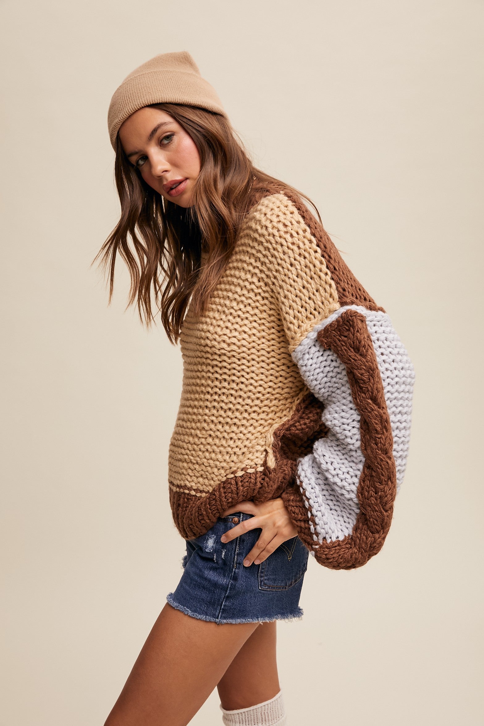 MADISON HAND CROCHET BLOCK SWEATER - TAUPE MULTI