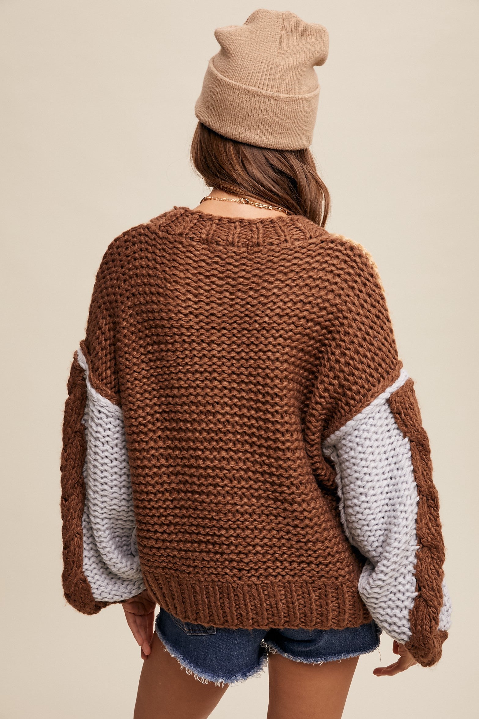 Expertly crafted with hand crochet stitching, this chunky and cozy sweater is the perfect addition to your winter wardrobe. Stay warm and stylish with the Madison Hand Crochet Block Sweater in taupe multi.