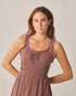 Our Jane dress features a scoop neck with gathered ruffle straps and a smocked shirred waist. This fun and feminine dress is perfect for entering spring!