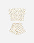 This comfortable set comes with a short sleeve top and coordinating shorts with an elastic waistline.