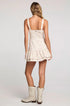 Crafted with ivory fabric with a textured ruffle at the hem, the Carleigh Mini Dress is both romantic and retro.