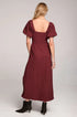 The Colyn Sangria Midi Dress exudes romantic sophistication with its dramatic square neckline and elegant princess sleeves.