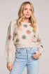 The Valeria Sweater features a 60s-inspired sweet blooming floral design with a cropped fit and full sleeves gathered at the wrist.