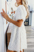 Knee length dress with textured fabric, fit and flare silhouette, puff sleeve, round neckline, elastic in the back, and side zipper.
