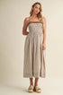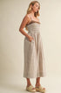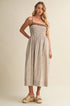 Adjustable straps layered look midi dress with smocked details on bodice.