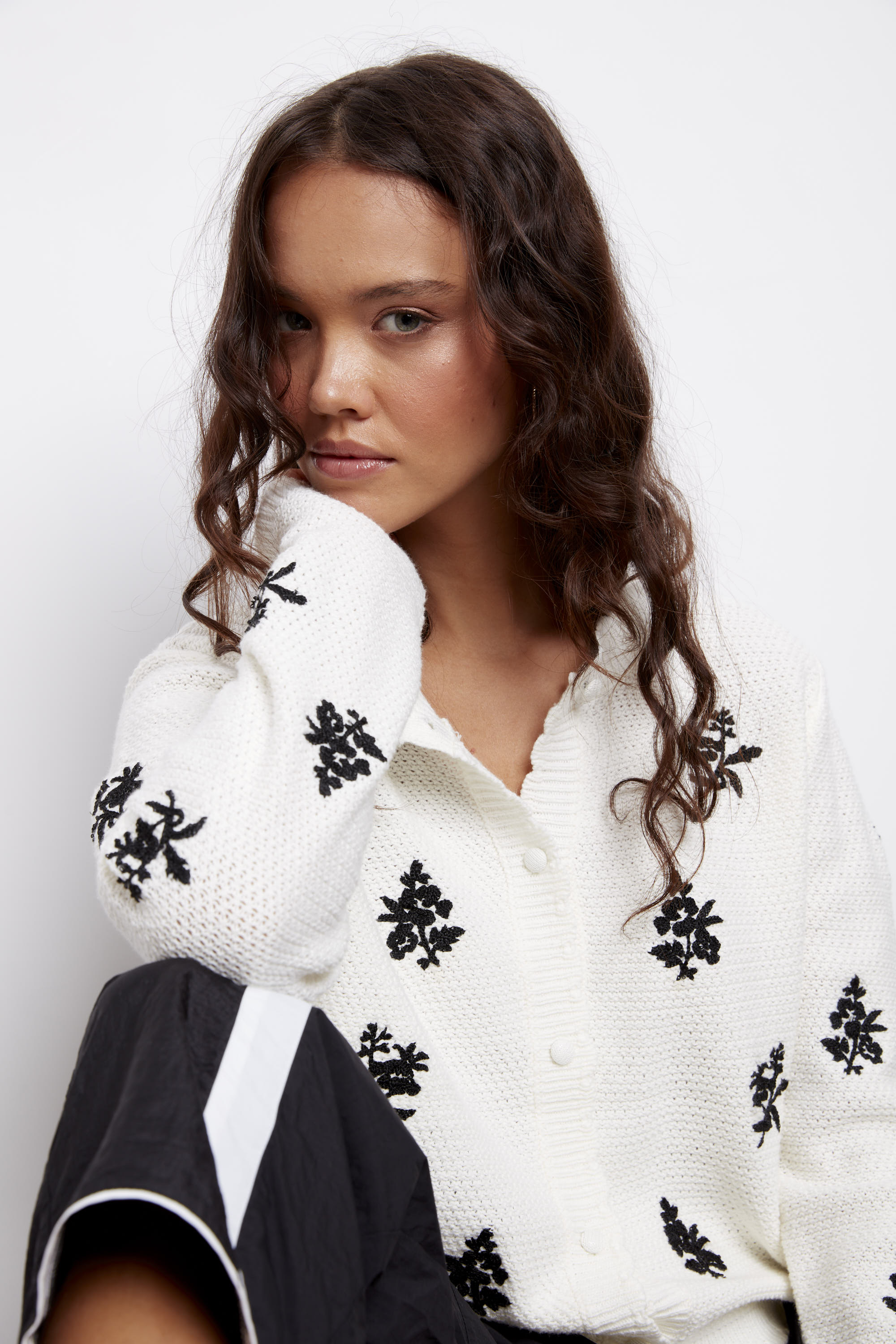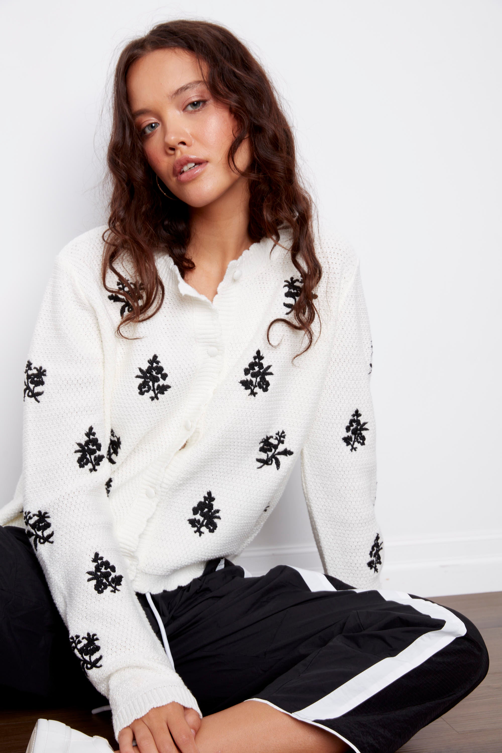 REEN LONG SLEEVE CREW NECK CARDIGAN - IVORY