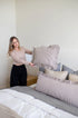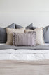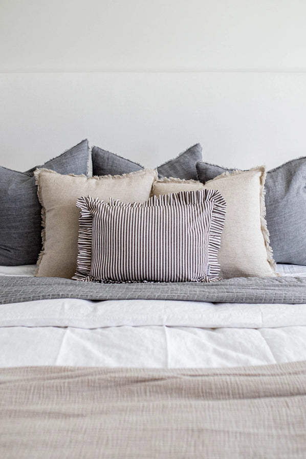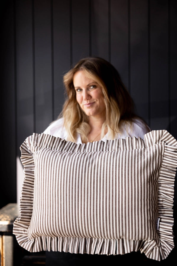 RUFFLE LUMBAR PILLOW WITH INSERT - BROWN WHITE STRIPES